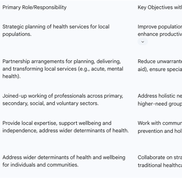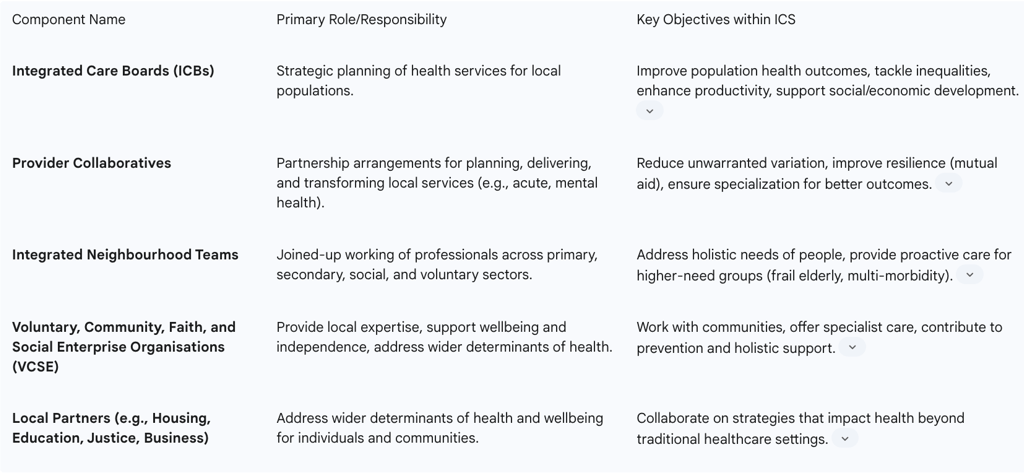 Table 1: Key Components of NHS Integrated Care Systems (ICSs) and their Roles