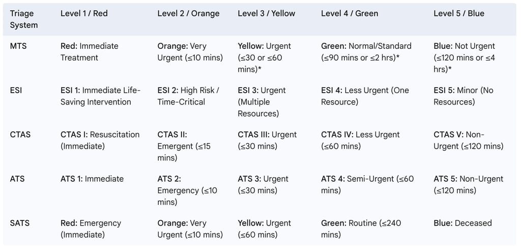 Triage Systems Compared: A Comprehensive Analysis of MTS, ESI, CTAS, ATS, and SATS