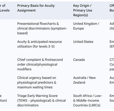 The choice between these systems often involves a trade-off. Systems like ATS, with their primary focus on urgency and a rapid assessment timeframe of 2-5 minutes , offer speed and a clear, universally understandable framework. This simplicity can be an advantage for rapid initial sorting. Conversely, systems that incorporate more complex decision trees or extensive sets of modifiers, such as MTS with its 52-53 flowcharts , CTAS with its first and second-order modifiers , or ESI with its multi-step algorithm including resource prediction , may offer a more nuanced and potentially more comprehensive assessment. However, this increased complexity can also demand more cognitive effort from the triage clinician, necessitate more intensive and ongoing training, and potentially impact inter-rater reliability if not consistently applied or well-supported by decision aids. SATS attempts to strike a balance by combining an objective physiological score (TEWS) with a list of clear clinical discriminators, designed for usability in LMICs , yet even its application can be challenging as noted.